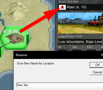 If you want to, you can also basically rename all the named locations, like cities, factories and even oil and raw locations. For that just click on the city name. After you change the name, you have to click the hexes so they can refresh with the new text.